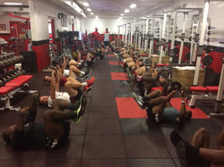 ![]() We end every lift and finisher with 15 pushups for 15 wins | ![]() Spark Training instructing athletes on how to perform training exercises | ![]() Low back partner stretch |